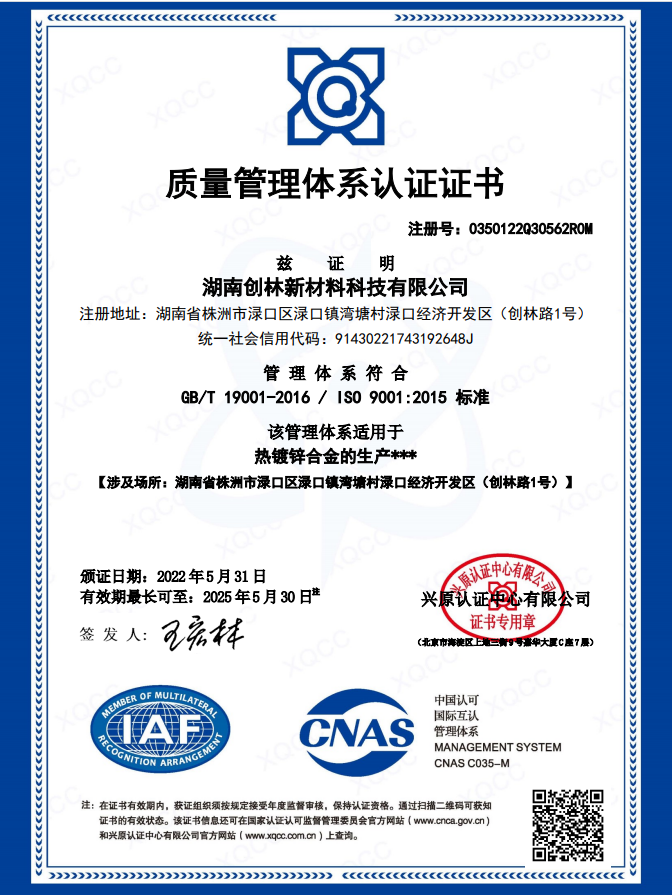 質(zhì)量管理體系認(rèn)證證書